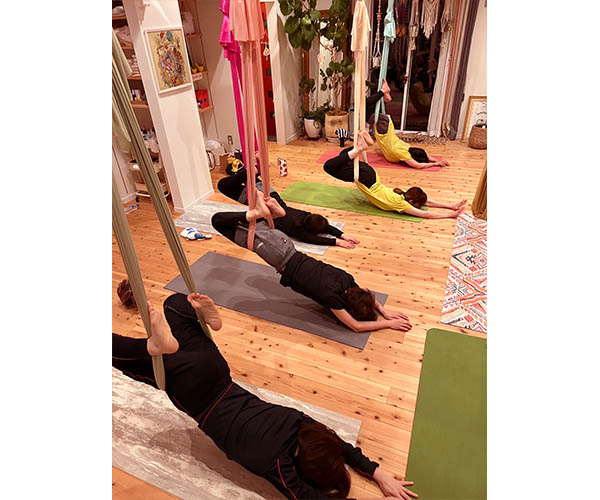 またエアリアルは不安定な中でポーズを一定時間維持するため、体幹強化に繋がります。