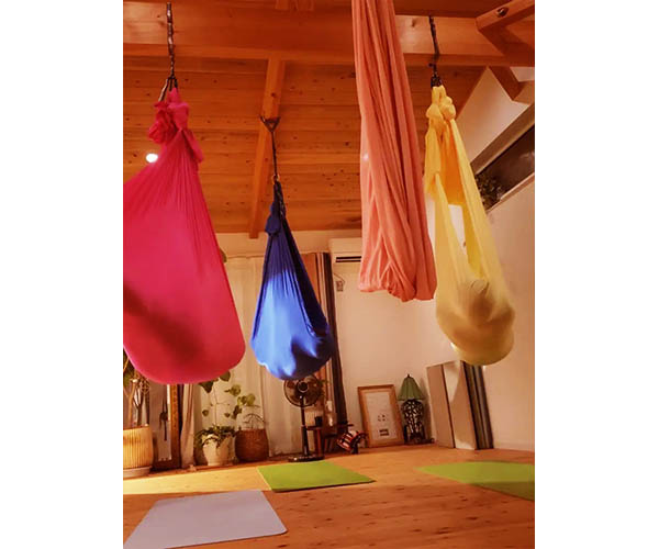 エアリアルはフロアではなく空中でハンモックを使って行うトレーニングです。